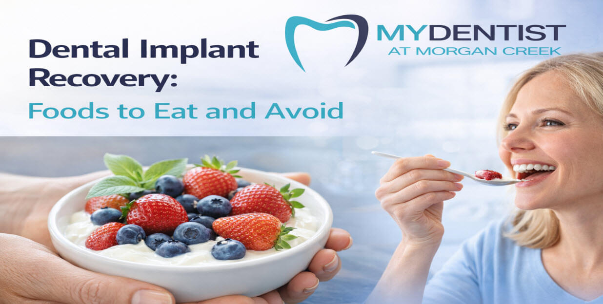 Discover the best foods to eat and avoid during dental implant recovery. Expert diet tips from My Dentist at Morgan Creek in South Surrey, BC.